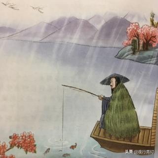 青箬笠,绿蓑衣,斜风细雨不须归。这首词描写了西塞山前白鹭在自由地翱翔,江岸桃花盛开,春水初涨,水中鳜鱼肥美。渔翁头戴青竹斗笠,身披浅绿色蓑衣,冒着斜风细雨,悠然自得地垂钓,就算下起雨了都不想归家。这首诗,画中有诗,诗中有画,寄情山水抒发诗人如渔夫一般怡然自得的心境。