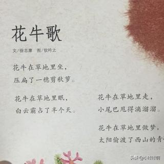 《花牛歌》通过描写了花牛在草地里坐、在草地里眠、在草地里走、在草地里做梦,表现了花牛悠闲的生活,表达了诗人对生活的热爱和对自由的追崇。