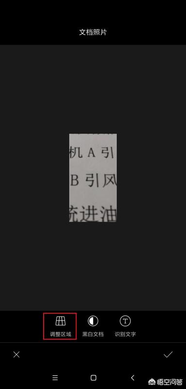 4、图片文件加载完毕之后,点击页面底部“调整区域”菜单,选择要识别文字的区域范围;