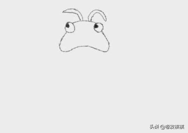 3、再在头部的前面我们画出蝉的两只触角。