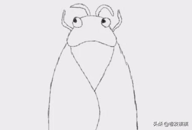 2、在这两只眼睛的基础上我们再画出蝉的头部。